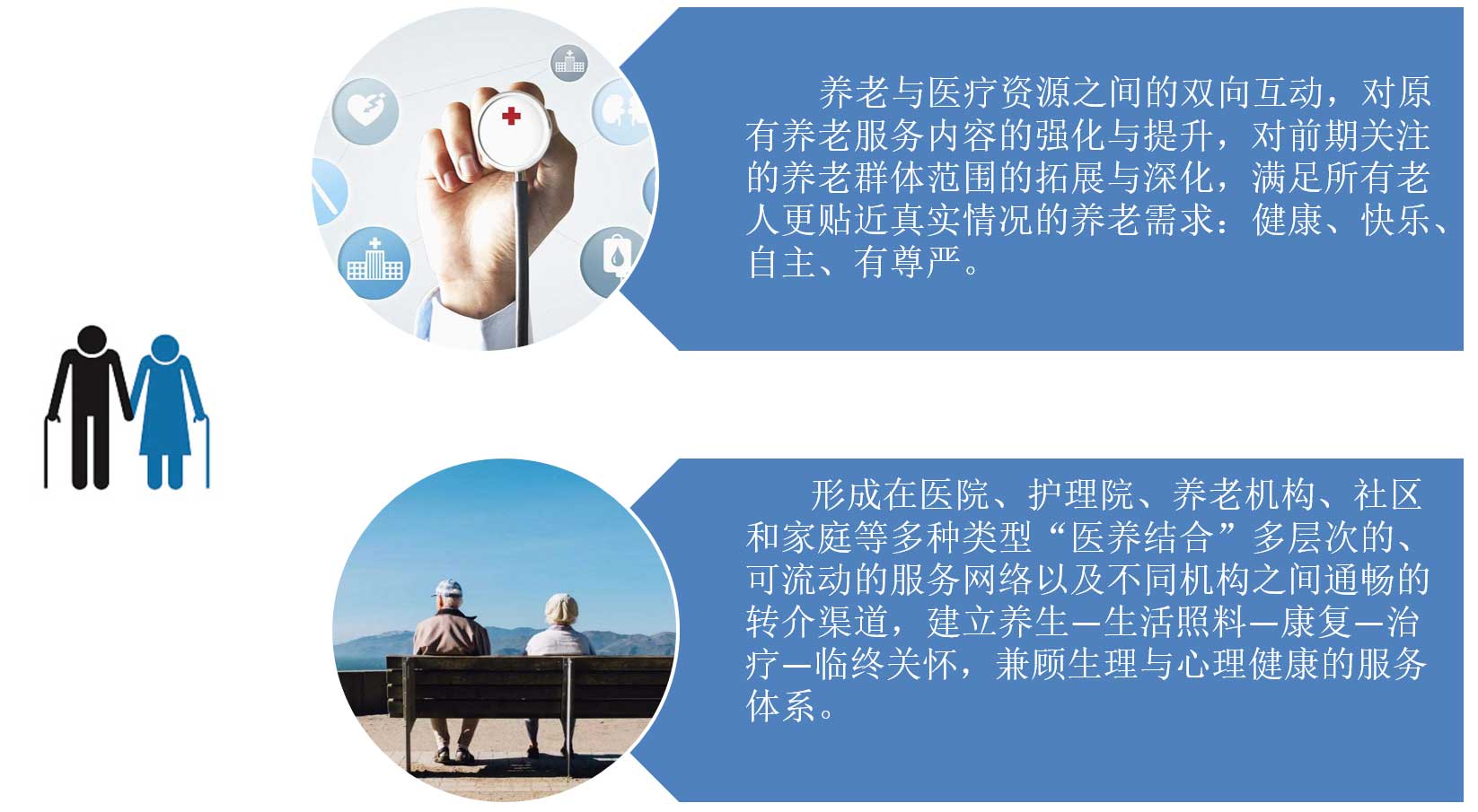 醫(yī)療機構(gòu)增設養(yǎng)老中心或病區(qū),設置養(yǎng)老病床或老年病科,開展康復、保健、養(yǎng)生、治療、生活護理以及臨終關(guān)懷等醫(yī)養(yǎng)結(jié)合服務。